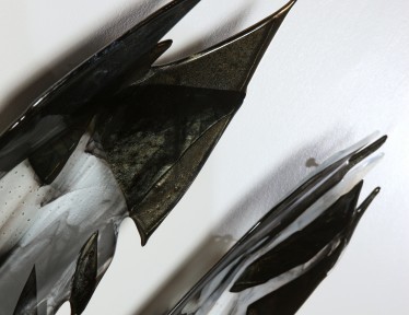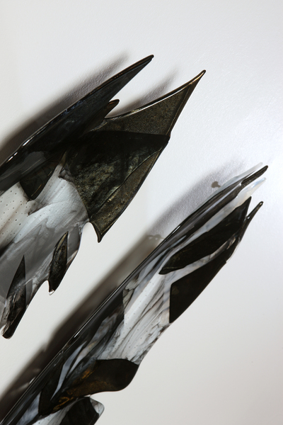 Design: Matteret blandet sort og hvidt glas med guldeffekter.